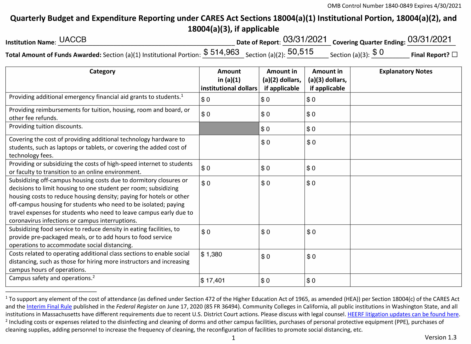 Quarterly Budget and Expenditure Reporting Under CARES Act